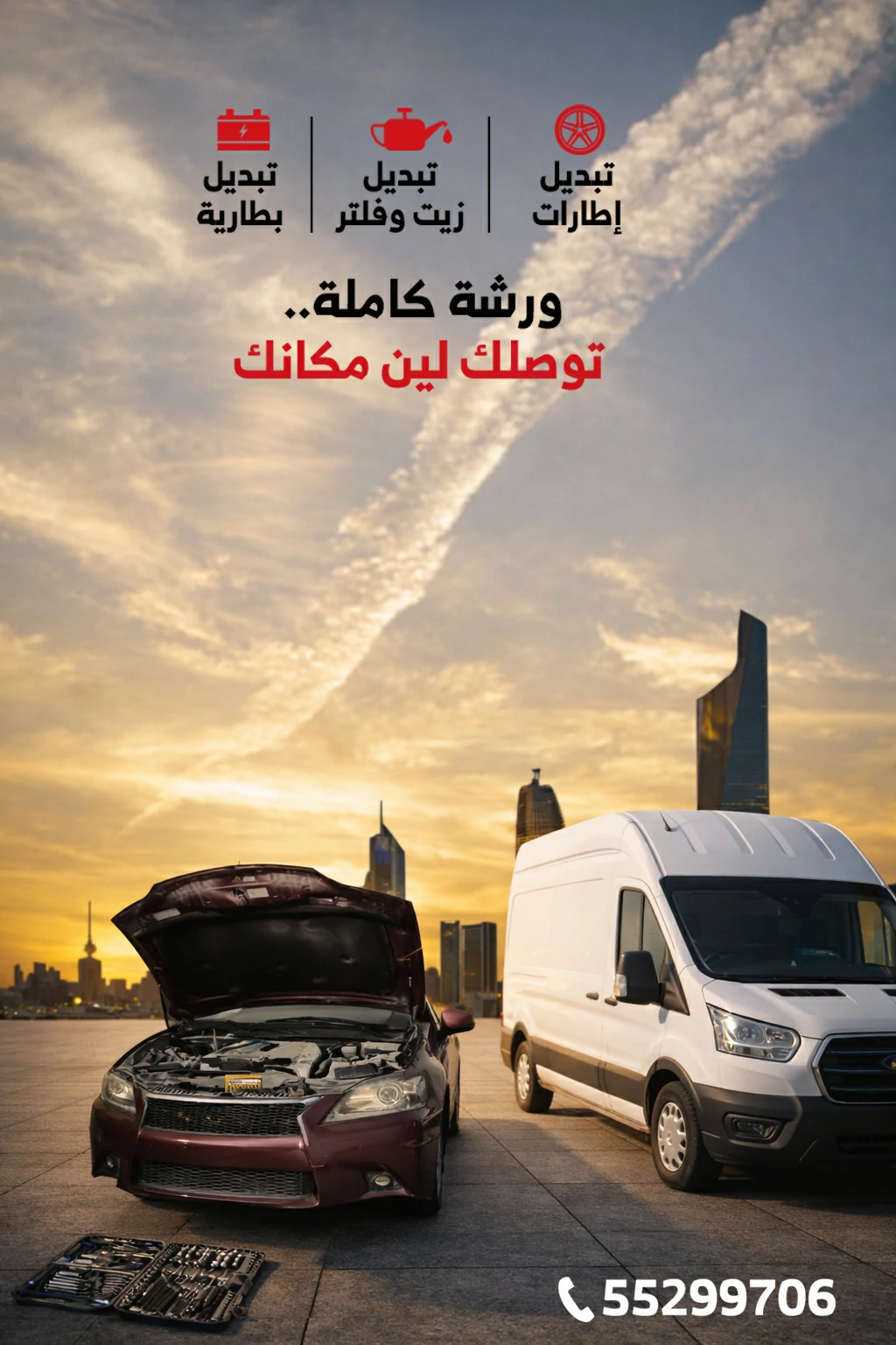إي نعم، فريقنا المتنقل يغطي كل مناطق الكويت. سواء تبديل سفايف، تصليح ميكانيك، أو فحص كمبيوتر، نوصلك وين ما كنت بأسرع وقت.